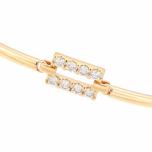 バングルのようなテイストが魅力的なブレスレット。スクエアにセットされたダイヤモンドが美しく煌めき、手元に存在感を与えてくれます。洗練されたミニマルデザインなので、お揃いのリングと組み合わせても素敵です。