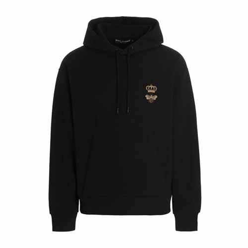 男性らしいアクティブさを感じるドルチェ&ガッバーナのフーディーパーカー。ベーシックなブラックカラーのコットンMIX素材にアイコニックな刺繍モチーフが入って、スタイリッシュに高見えするアイテムです。