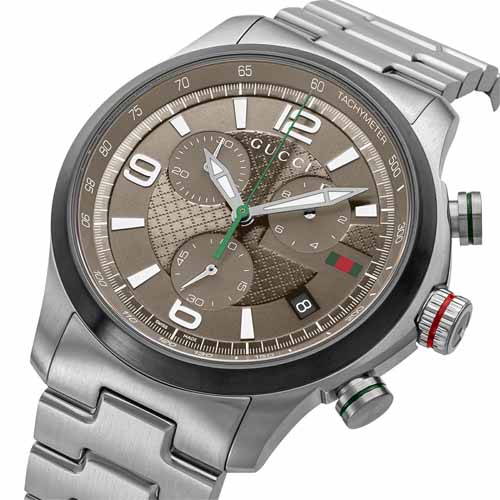 ハイブランド界を牽引するグッチから、タイムレス(永久)という名にふさわしいベストセラーのシリーズをご紹介します。ビッグケースのクロノグラフ搭載モデルで、3つのインダイヤルと内側のタキメーターが特徴。スポーティー過ぎず、プレゼント映えするお洒落なハイブランドウォッチです。