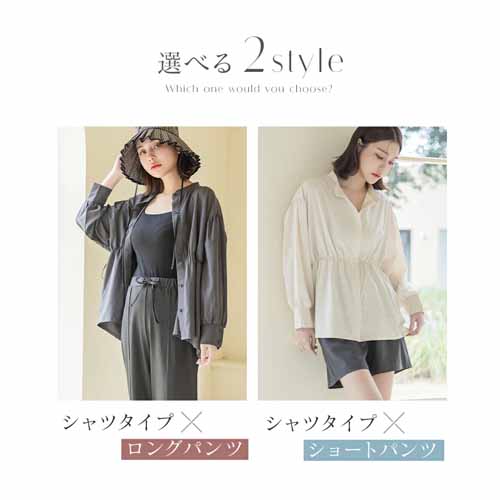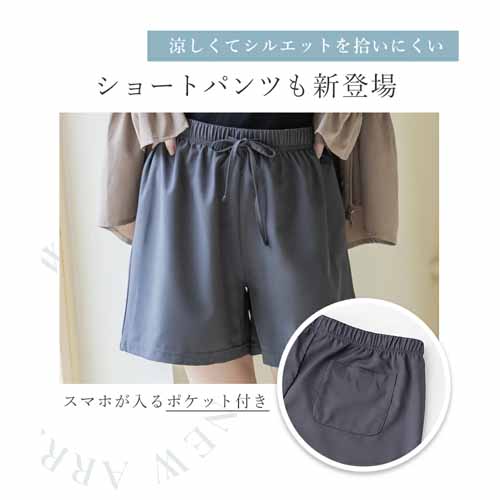 ジップタイプやショートパンツなども選べるバリエーション。女性のボディラインを考え抜いたゆったりシルエットの着痩せ設計で、体型カバーも考慮されています。日常使いもできるおしゃれなデザインが魅力的です。