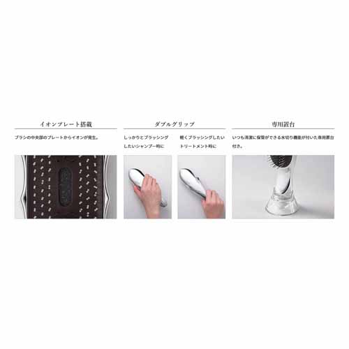 ブラシの中央部にはイオンプレート搭載。さすが、20代女性の気持ちが分かっているReFaの商品です。上部と下部のダブルグリップで、ブラッシングの強さも自分で調整可能。洗面台が散らからずにすむ専用置台も、使っていると便利さが分かる付属品ですね。