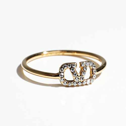 Vロゴにスワロフスキーをあしらった華やかなデザインが魅力。華奢なゴールドトーンメタルが上品な光沢を放ち、パーティーでも映えるスタイルを叶えてくれます。重ね付けもしやすく、指輪をコレクションしている女性にもおすすめです。