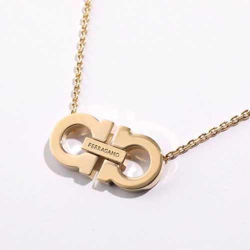 ゴールドカラーのチェーンに、フェラガモを象徴するダブルガンチーニモチーフが品よく主張します。軽やかな装着感と高級感が組み合わさり、普段使いからドレスアップシーンまで幅広く活躍。専用BOXと保存袋付きでプレゼント映えもバッチリです。