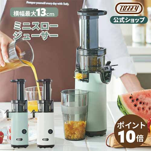 Toffyのジューサーは1万円のリーズナブルさが魅力。石臼式の低速スクリューでゆっくり圧搾するため、高速ミキサーと比べて熱の発生量が少なく、栄養素が壊れにくいことが特徴です。さらに食材が空気と触れにくい構造になっているため、酸化や泡立ちを抑え鮮度をキープします。