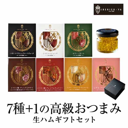 イベリコ豚の生ハムを7種(+おまけ含む)で食べ比べできるセット。20gずつの個包装で、食べきりやすく保存もしやすい設計です。ギフト感のあるパッケージで、開けた瞬間の特別感も十分。