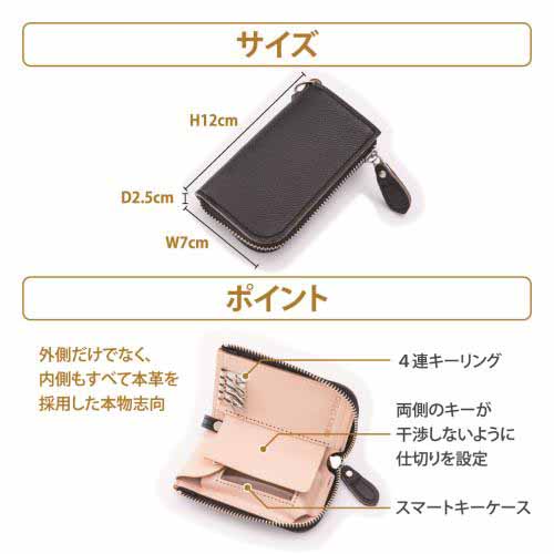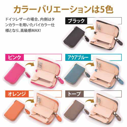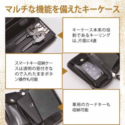ドイツレザーを使用したしっかりとした作りで、耐久性が高いのが特長。複数の鍵をまとめやすく、スマートキーにも対応。手触りの良さと高級感を兼ね備えています。