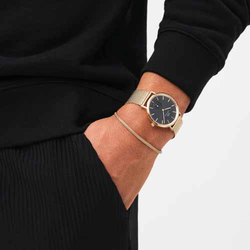 アクセサリーに慣れていない30代男性でも取り入れやすいのが、シンプルなブレスレット。Daniel Wellingtonは主張しすぎないデザインで、時計との重ね付けもしやすい点が魅力です。服装を選ばず使えるため、記念日ギフトとして程よい特別感を演出できます。