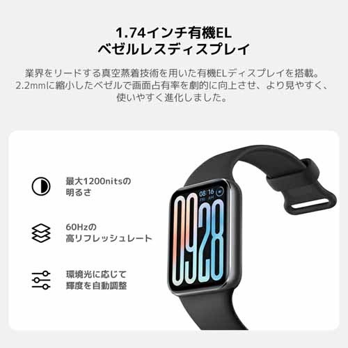 大画面ディスプレイで視認性が高く、健康管理や通知確認もスムーズ。軽量で装着感が良く、運動時や就寝時も邪魔になりません。長時間バッテリーで充電頻度が少ないのも、忙しい30代男性には嬉しいポイントです。
