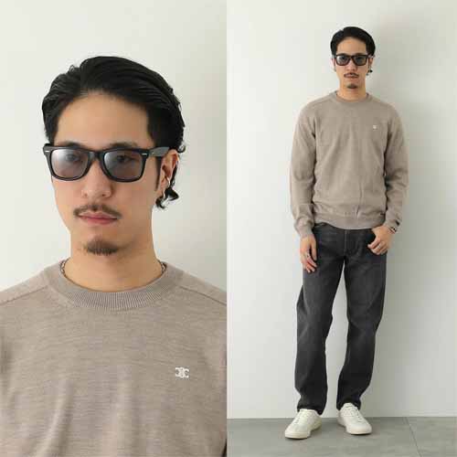 鼻パッドが独立しているクリングスタイプで、日本人の男性でもズレにくい仕様。細身のメタルフレームが知性を感じさせ、モード感を引き立てるアイテムです。
