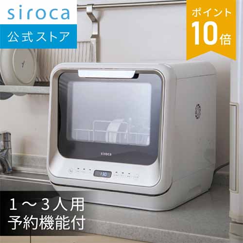 水道工事が不要なタンク式で、シンクから離れた場所でもコンセントに挿すだけで簡単設置できます。コンパクトサイズなのに省スペースで3人分の食器も一気に洗浄。予約タイマーや送風停止を繰り返すドライキープ機能もついた優れものです。