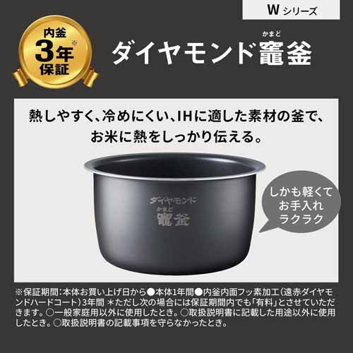 0.5合~5.5合炊きなので、一人暮らしから家族が増えるまで使いつづけることができます。公式ストアで内釜の3年保証つきも安心。