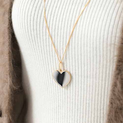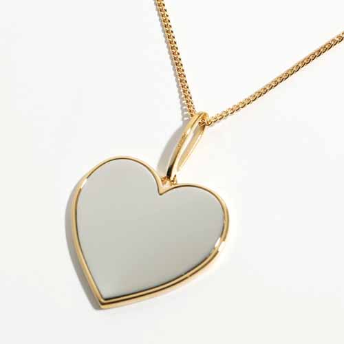 華やかでキュートなデザインが魅力のネックレスです。ペンダントはハートモチーフのミラーネックレスになっていて、首元を煌びやかに演出してくれます。チェーンの途中にアジャスターカンが付いているので長さ調節もカンタンにできます。