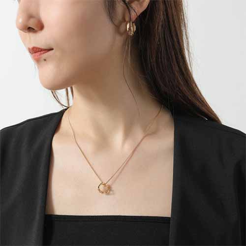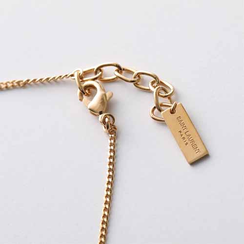華やかで立体感のあるデザインが魅力のチェーンネックレスです。ペンダントにはツイストした「ダブルYSL」モノグラムリングをあしらっていて、首元を煌びやかに演出してくれます。ロブスタークラスプで長さ調節もカンタンにできます。