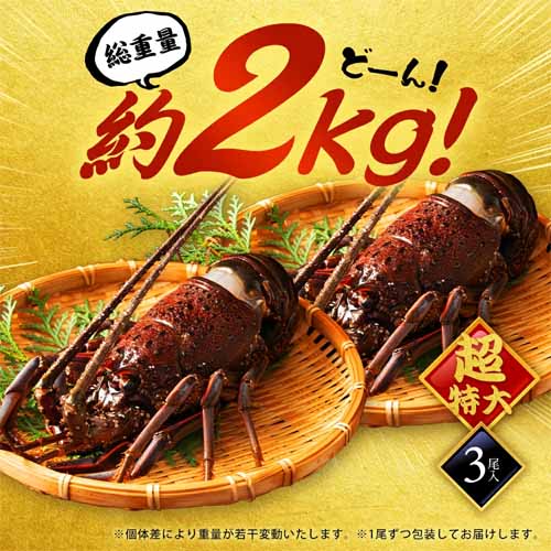 総重量約2000gの伊勢海老セットです。年間約1,000tしか水揚げされない希少な伊勢海老を、水揚げ後すぐに活きたまま急速冷凍した新鮮さ。海老が最も美味しい8月~10月のシーズンに漁獲された千葉県産の伊勢海老を使用しています。