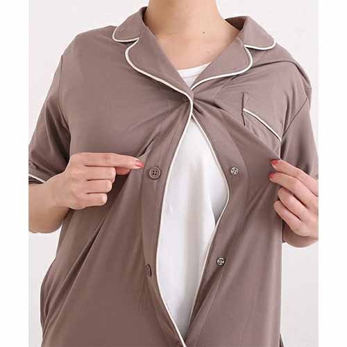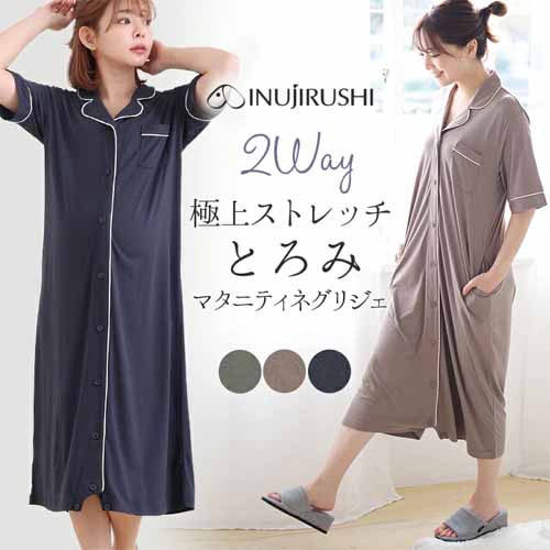 マタニティウェア・産後ケア・授乳服の専門ブランドとして知られる「犬印本舗」は、確かな品質とデザイン性で信頼できるショップです。胸元が出しやすいサイドスリット開きのパジャマは、ゆったりとしたお腹まわりでらくちんなのに、すっきり見える美シルエット設計で◎。