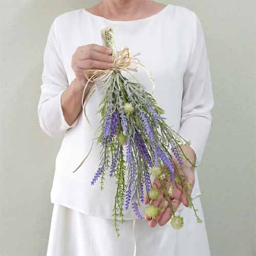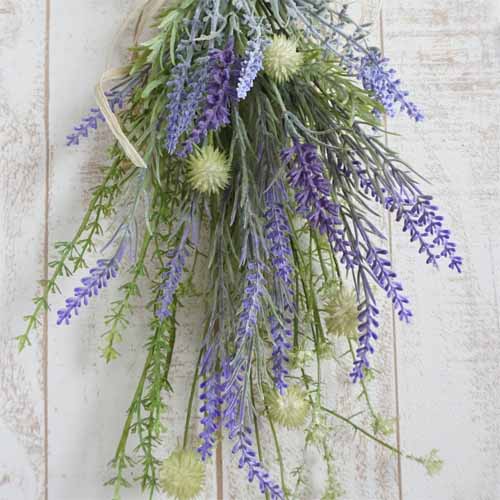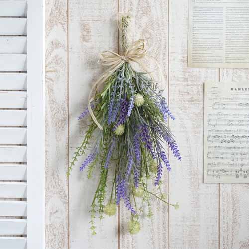 季節に合わせて出し入れできる造花のインテリアは便利な装飾アイテムです。爽やかな雰囲気を演出する「ラベンダーと野草のスワッグ」はシンプル&お洒落で使いやすく、新居に華を添えます。