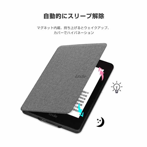 2024年モデルの6インチKindleにジャストフィットする専用設計。衝撃や傷から本体をしっかり守る衝撃吸収素材で、マグネットによるカンタン開閉です。マグネットを持ち上げると自動的にスリープ解除して、閉めるとオートスリープができる点も便利。