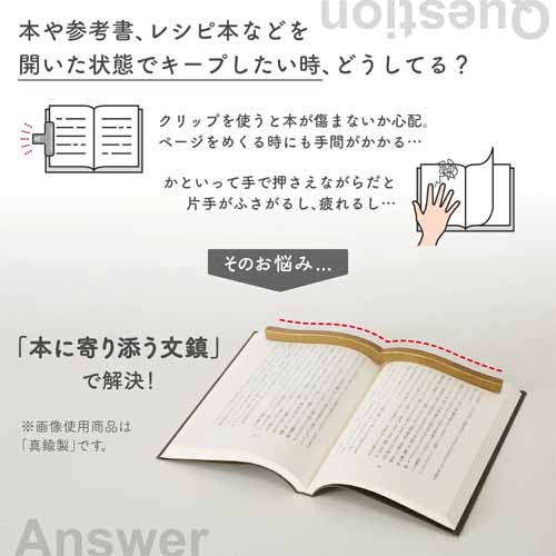 ほどよい重さでページを自然に押さえ、本が閉じてしまうストレスを軽減。開いた本に寄り添う形状で、置くだけで固定できるデザインが秀逸です。真鍮製のタイプは使い込むほど色合いが変わっていき経年変化を楽しめ、高級感漂うパッケージでプレゼント映えもします。