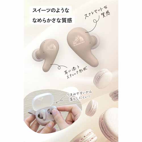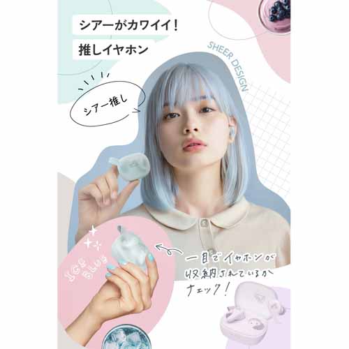 半透明のシアーケースはストラップ付きで、バッグにぶら下げて持ち運びにも便利。イヤホン本体もスイーツのような滑らかな質感で“おしゃかわ”です。