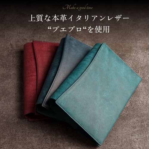 上質なパナマレザーを使用し、薄くて軽いため本に挟んでもかさばりません。ゴールドのロゴが控えめに輝き、品のあるデザイン。発色が美しく、カラーによって雰囲気が異なるため、プレゼントとして選びやすい一品です。