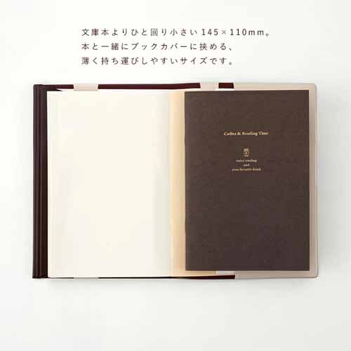 1冊につき20冊分の記録が可能で、目次・読みたい本リスト、見開きの記録ページ、お気に入りリストなど、読んだ本の情報や感想を整理しながら残せます。文庫本よりひと回り小さいので、本と一緒にブックカバーに挟め、薄く持ち運びしやすいサイズ感が◎。
