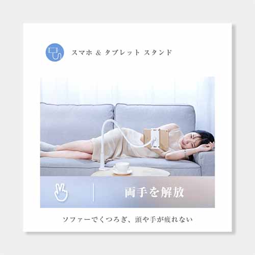 手ぶら読書が叶う優秀アイテム。ベッドサイドだけでなく、キッチン・バスルーム・デスクなど、さまざまな場所に対応する汎用性が◎。
