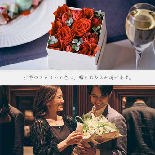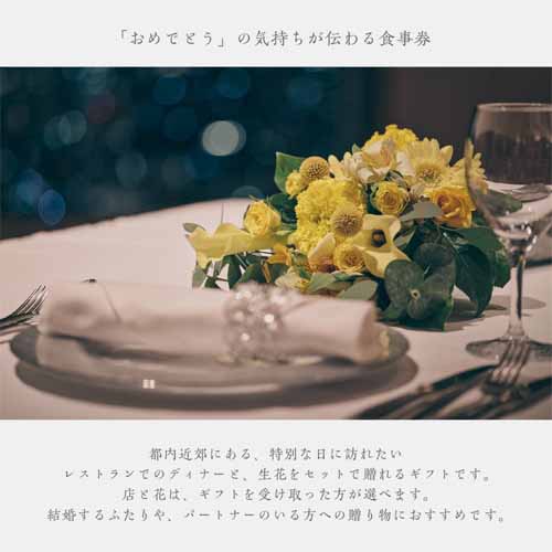 記念日向けに特化したレストランチケット。生花はあくまでさりげなく、レストランスタッフから渡してくれるのが嬉しいポイントです。