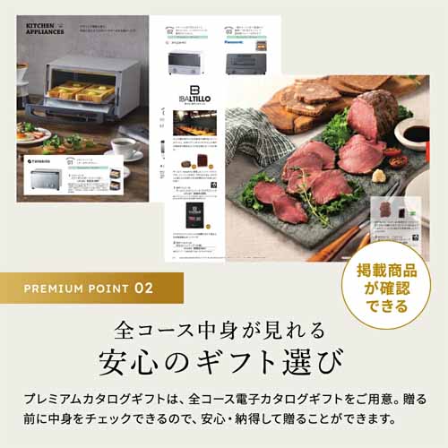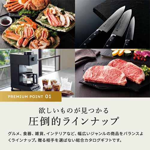 掲載ブランドの格と安定感で選ぶならこちら。ギフトメーカーとして50年のサポート体制に定評があり、特に目上世代への信頼度が高く、フォーマルシーンで活躍します。派手さよりも“堅実さ”を重視したい場面に適した一冊です。