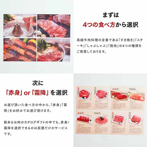 パッケージの高級感が最たる魅力。3万円台の紅梅は約130点の厳選商品から選べ、カタログの中には商品券もラインナップされて幅広いシーンで利用できます。