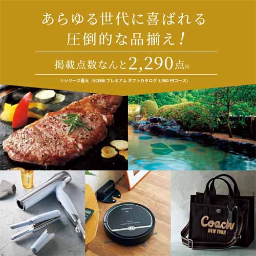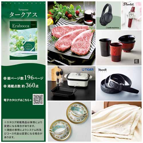 3万円台のクェーサー&マーキュリーは、全国の有名ブランド商品・グルメ・日用品を約570点幅広く掲載。落ち着いた上品な内容で、選ぶ楽しさと欲しいものを見つける喜びを同時に届けることができます。のしやメッセージカードなど各種サービスも充実。