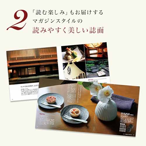 3万円台の「食を讃えるひととき」は、和食・フレンチ・鉄板焼きなど豊富なジャンルで214施設から選べます。ペア利用前提のプランが多く、二人の時間を演出できます。格式ある誌面でフォーマルにも対応可能です。