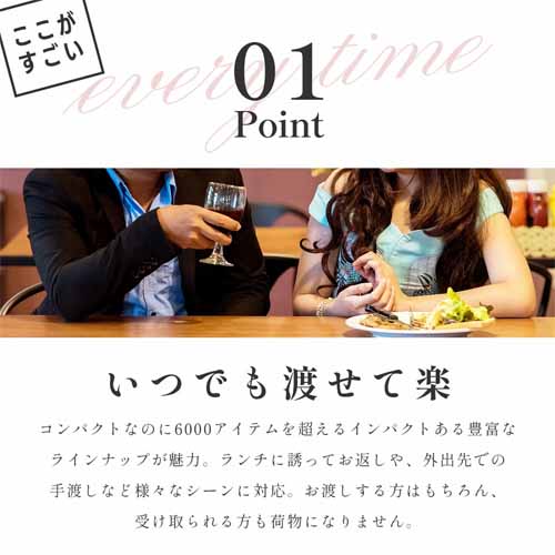 冊子ではなくカード型で、持ち運びや管理がしやすい点が魅力。スマートな贈り方をしたい場面に最適です。若い世代やデジタルに慣れた方に喜ばれます。