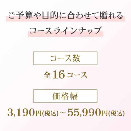 日本で初めてカタログギフトを誕生させたシャディから、コース展開が豊富で贈る側の細かな予算調整がしやすいシリーズです。掲載点数が多く、選択肢の幅を重視する方におすすめです。