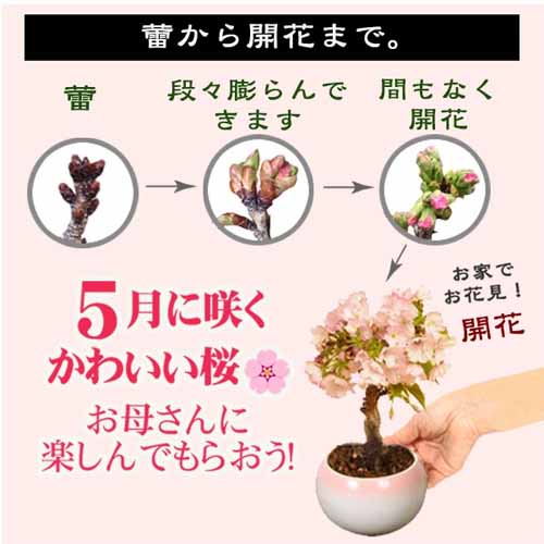 小さな桜の盆栽は新生活や母の日のプレゼントにも人気です。“本物の桜”を育てる楽しみを贈れる一品は、花好き、園芸好きなお母さんにおすすめです。桜の成長を長く見守ることができるハートフルなプレゼントになるでしょう。