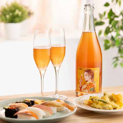 山形県産デラウェアを赤ワインの手法で仕込んだ爽やかなワイン。柑橘系の爽やかさと桃のような柔らかな甘みのある香りに加え、桜の花が遠くに香ります。和食にも中華にも合う、デイリーに楽しめる味わいが特徴。春限定感のあるネーミングもおしゃれ。