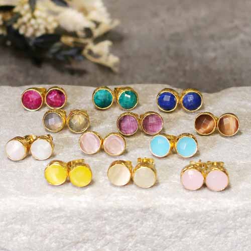 22金コーティングのアンティーク調デザインに、個性豊かな天然石をセッティング。小ぶりながら存在感があるため、普段使いから特別な日まで幅広く活躍します。ピンク色なら「ダスティキャッツアイ」や「ローズクォーツ」がおすすめ。