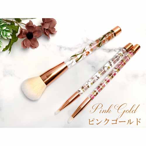 筆を使うことでパウダー量を調節しやすく、実用性バツグン。持ち手部分にピンク系のフラワーを閉じ込め、華やかな印象に仕上がっています。飾っても可愛いデザイン性の高いコスメツールです。
