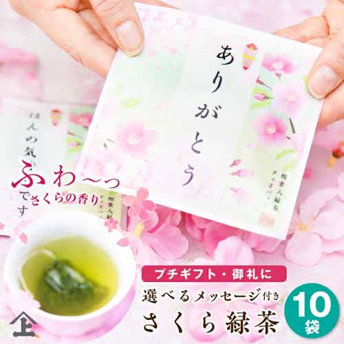 退職時のお配りギフトや卒業のお礼など大勢にプレゼントを渡したいシーンでは、少量サイズの個包装アイテムが重宝します。ほんのり桜が香る緑茶は年齢問わず喜ばれる、安心感のある一品。「今までありがとうございました」の気持ちをやさしく伝えられる、春らしい一品です。