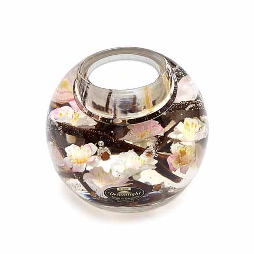ガラス内部に桜を封じ込めたキャンドルホルダー。火を灯すと柔らかな光が広がり、癒しの空間を演出します。置いているだけでも美しいインテリアとして楽しめ、お母さんへの母の日のプレゼントにもおすすめです。