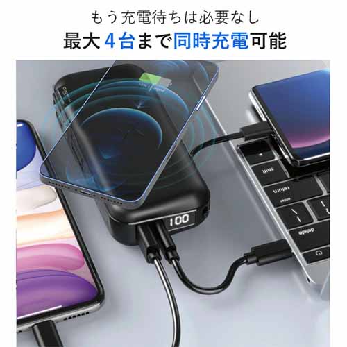 大容量バッテリーのなかでは軽量の350gで持ち運びに便利。USB Power Delivery60Wにも対応でスピード充電でき、作業の邪魔になりません。2つの出力ポートがあり2台同時接続可能、スマートフォンやイヤホンの充電できます。見た目もスタイリッシュでおしゃれですね。