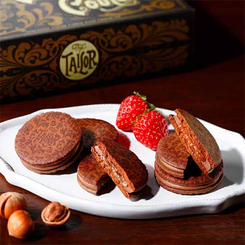サクサクのラスクにベルギー産チョコをコーティングし、ナッツやフルーツでデコレーション。材料には良質な小麦やバターを使用しているこだわりも。職人の手作業による繊細な仕上がりで、味・見た目ともに完成度が高い一品です。