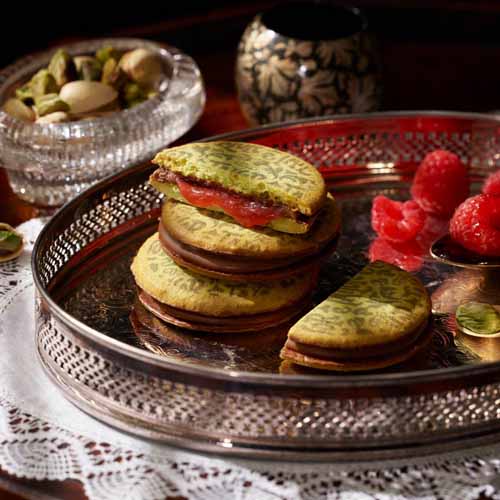 濃厚なナッツクリームを包んだショコラサンド、甘酸っぱい果実感が広がるいちごのショコラサンド、ラズベリーソースとピスタチオクッキーのショコラサンドを豪華に詰め合わせた一品。それぞれ香りや食感の個性が際立ち、余韻まで美しい味わいです。個包装仕様で配りやすく、場面を選ばずスマートに振る舞えます。