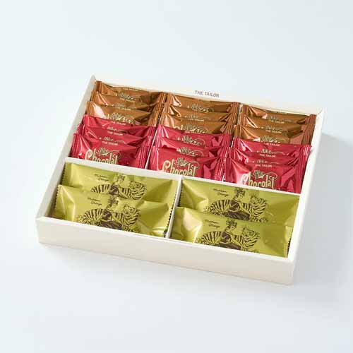 ショコラサンド2種とティグレ、異なる個性を一箱で楽しめるセレクションは、好みが分かれやすい女子会やママ会でも失敗しにくい心強さがあります。味の選択肢があることで「選ぶ楽しさ」も生まれ、さりげない気配りが伝わることも魅力。洗練されたパッケージも、受け取る際の嬉しさを盛り上げます。