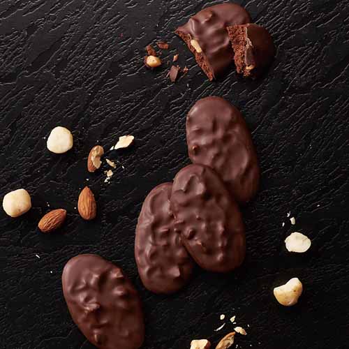 ミルクチョコレートにオレンジピール、レーズン、ヘーゼルナッツ、アーモンド、ピスタチオをあしらった贅沢なマンディアン。食感と香ばしさのコントラストが楽しめ、一枚でも満足感の高い仕上がり。見た目の美しさも際立ちます。