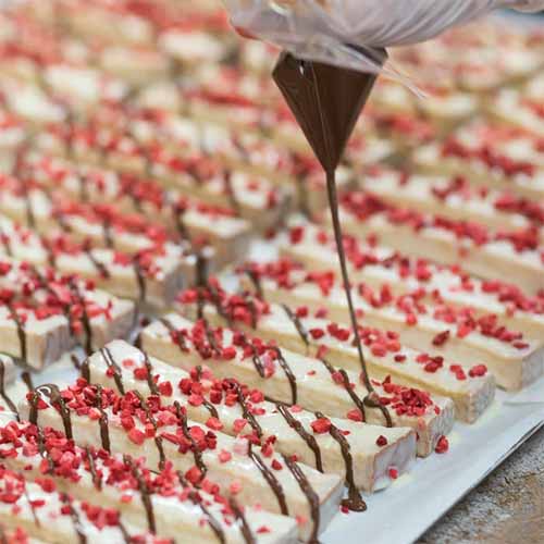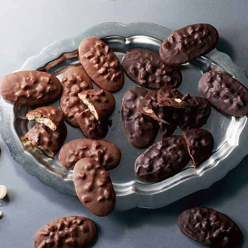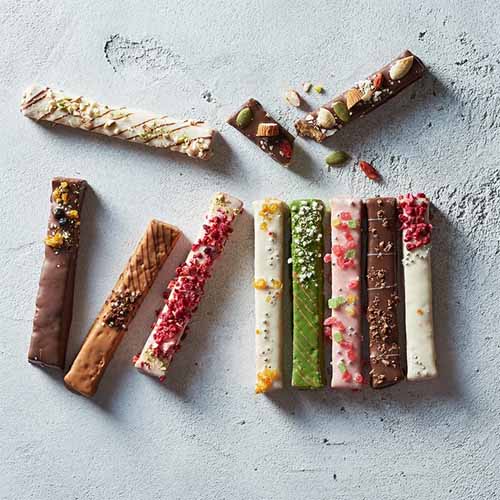 サクサクのラスクにベルギー産チョコをコーティングし、ナッツやフルーツでデコレーション。材料には良質な小麦やバターを使用しているこだわりも。職人の手作業による繊細な仕上がりで、味・見た目ともに完成度が高い一品です。