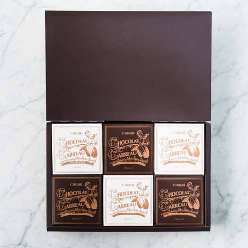 異なるカカオ分や風味を楽しめる5種のチョコレートをアソート。なめらかな口どけとバランスの取れた甘さは、誰にでも食べやすい味わい。深みのあるパッケージも上質感を演出します。
