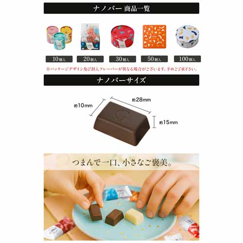 一口サイズのナノバーは、香り高く口どけなめらか。素材とレシピにこだわったチョコレートで、甘すぎず後味も上品です。カラフルな個包装は気分を明るくしつつ、味は本格派のバランスが◎。