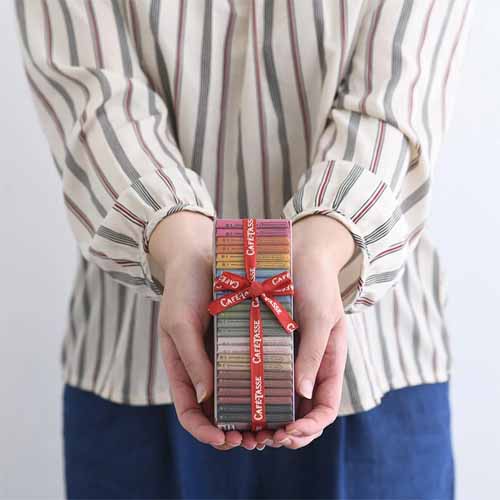 ベルギー発のCafé-Tasse(カフェタッセ)は、「コーヒー好き」「チョコ好き」な女性に刺さる通好みなブランド。シンプルで洗練された見た目は職場でも浮かず、味の違いを楽しめるため会話のきっかけにもなります。甘いものに目がない方にも納得してもらえる一品です。