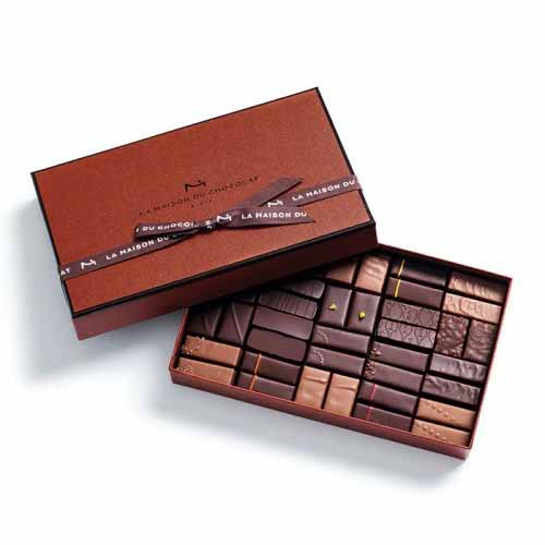 フルーツの風味のガナッシュやプラリネなど、メゾンを代表する20種40粒の詰め合わせ。驚くほどなめらかな口どけと繊細な香りが特徴で、チョコレート好きをうっとりさせるボンボンです。長方形のボンボンが美しく詰められた様子にも感動を覚えます。
