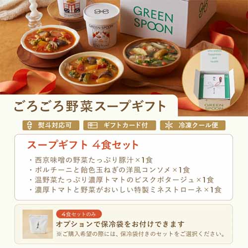 GREEN SPOONの4食スープセットは、どのメニューもお野菜たっぷり。デトックスしたい日の食事に取り入れれば、手軽に温かくて健康的な食事を摂れることでしょう。毎日が忙しいビジネスパーソンにとって野菜を摂るハードルは高くなりがち。疲れた日の晩御飯や、栄養が偏りがちな食生活の人へ、体を労わる気持ちが伝わります。
